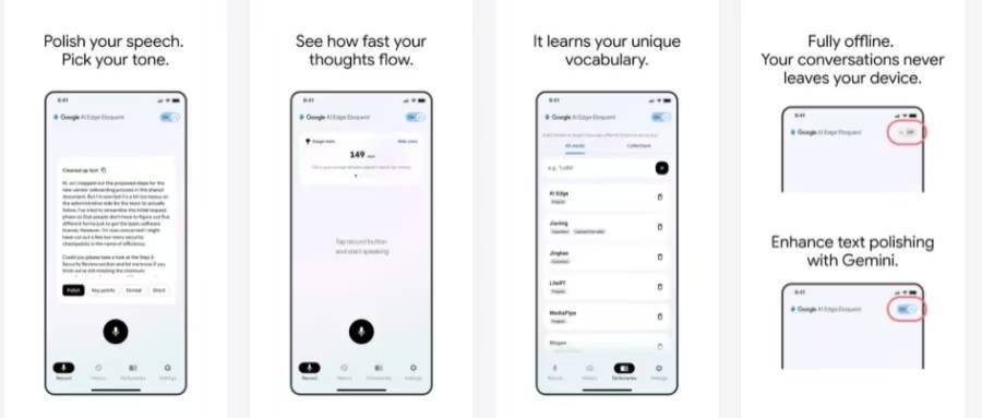 Eloquent并未纳入谷歌常规的消费级产品体系,而是以Google AI Edge名义发布。该体系主要面向开发者,提供在Android和iOS设备上本地运行AI模型的工具与SDK。这一归属让Eloquent不只是一个面向用户的语音工具,也承担了展示端侧模型能力的角色,用于向开发者和企业说明Gemma在实际场景中的落地能力。